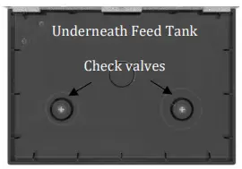 Remove the Feed Water Tank and empty the water, located in the bottom of the Tank you will see the strainer and diversion sleeve, pull them both out. Clean the parts with a brush under running water. Once clean, refit them. Next clean the check valves. Refill the Feed Tank with clean water and place back into the System base, making sure to locate it correctly.