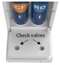 To maintain your System, it’s recommended to clean the Feed Water Tank and components after every three months of use; this helps to extend the service life of the filter elements. Check the Feed Water Tank strainer, diversion sleeve, and two check valves located on the bottom of the Tank are clean.