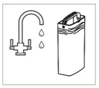 Unpacking- Choose a suitable countertop, flat, secure, and out of easy reach of small children. Place the drip tray under the outlet. Allow rear space for access. Open the feed water tank cover and lift out the water tank. The System is already pre-fitted with the filter cartridges for your convenience.