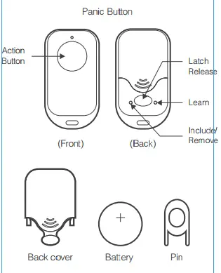 Press and hold the Include/Remove on back of Panic Button with provided Pin until its LED flashes red rapidly.