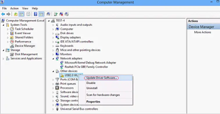 4. Open Device Manager. Right click the adapter and then click Update Driver Software… .