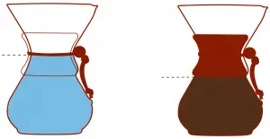 When brewing the CHEMEX ® to its full capacity (6 cups of coffee), fill the CHEMEX ® brewer with water up the mid point between the upper and lower sections. Pour this water from the CHEMEX ® into the appliance water tank.