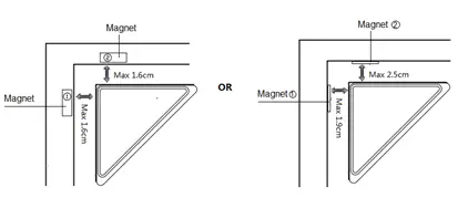 2. ” ” You can choose to install each one of magnet on the door frame according to your need or the distance between the door and frame, see the figure below.