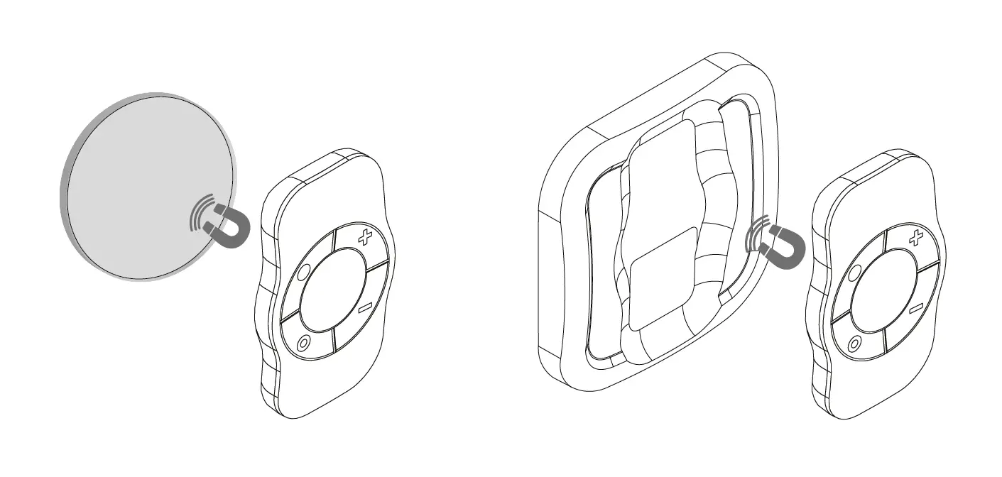 A magnetic wall support is included with your OCTAN Remote NodOn”®, which allow you to easily install and move it. This support can be screwed or fixed by adhesive bonding. The remote control embeds a small magnet, allowing fixing it on its wall support or on any metallic surface (fridge door, heater, etc.).