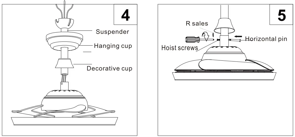 - ceiling fan installation, the screws in all parts must be firmly locked.