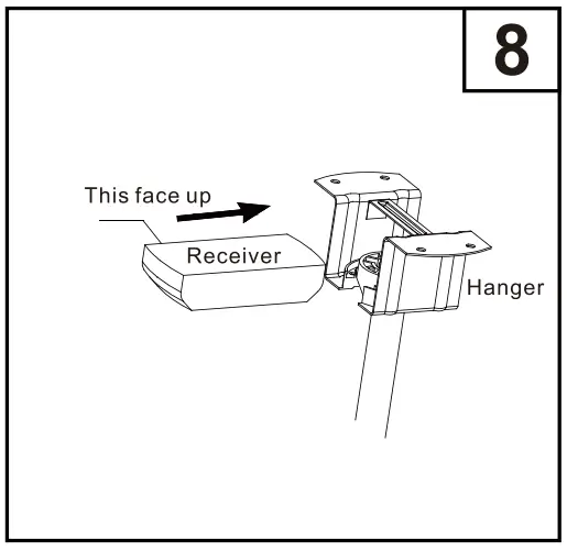 - The receiver is installed to the hanger as shown in 8 and the wiring is arranged.