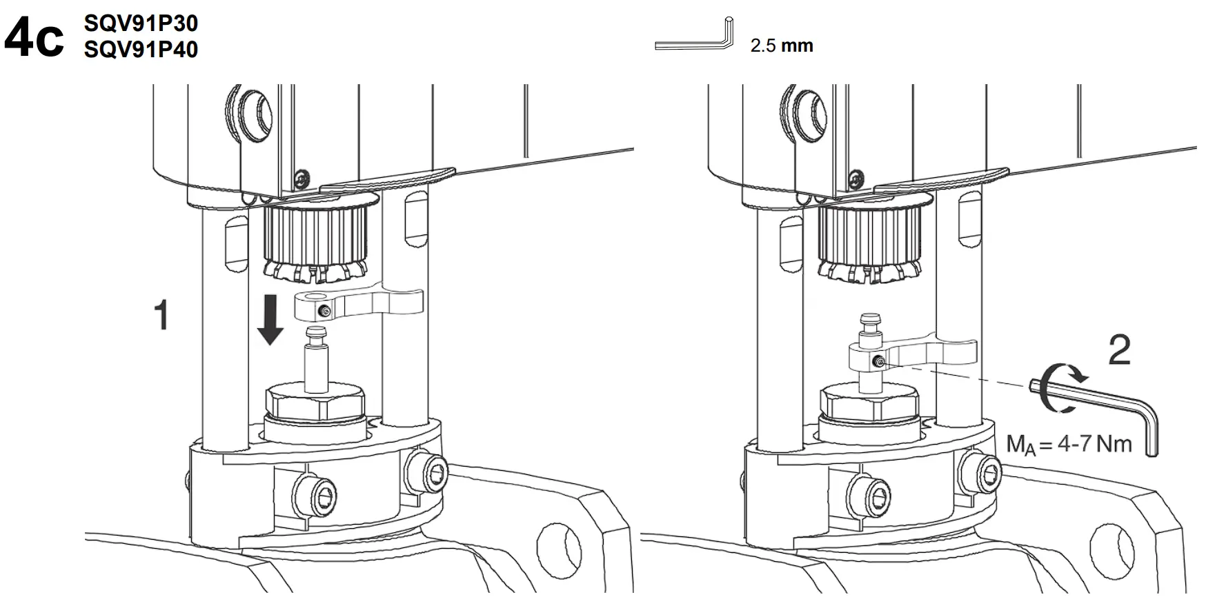 The drive should not be twisted or realigned after it has been mounted on the valve tappet without first loosening the tappet coupling.\ Reference document: M4315