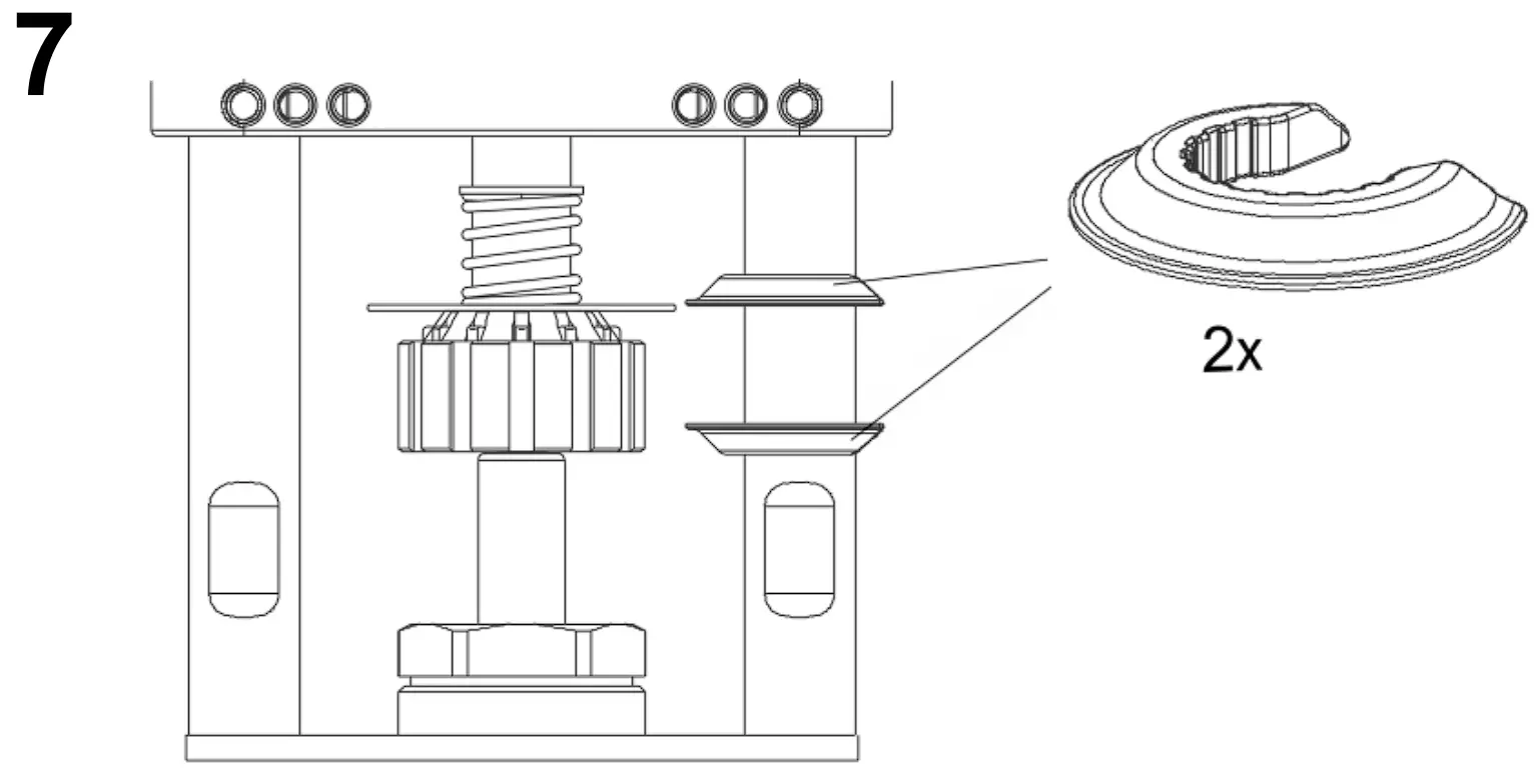 ![]() | Risk of hand injury caused by spring under tension. Do not dismantle the spring! |