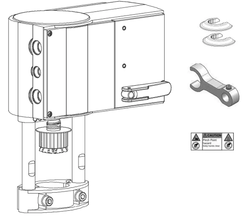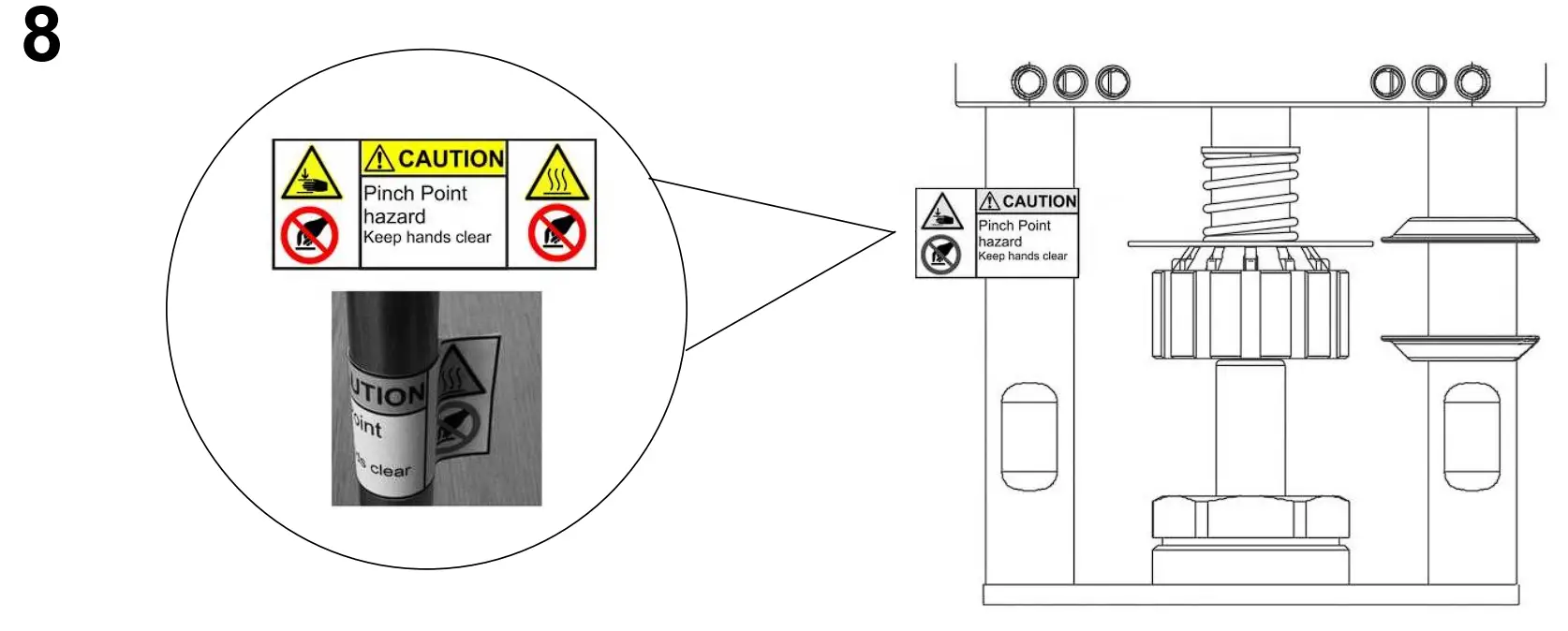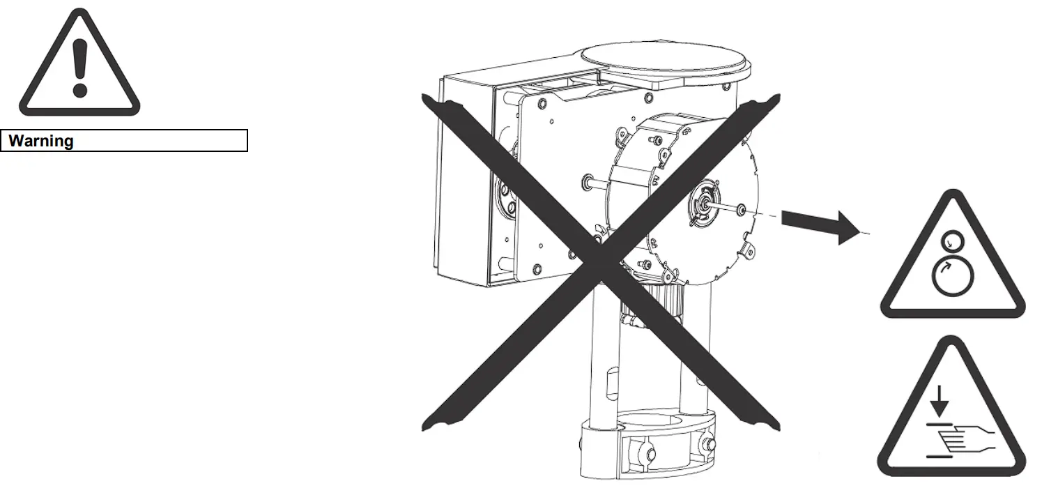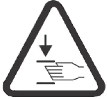 ![]() | Risk of injury due to limbs being trapped. Avoid contact with the danger areas! |