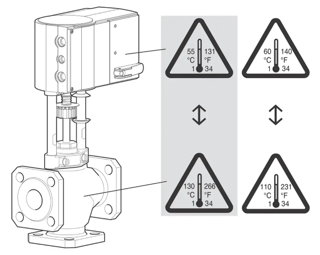 ![]() | Risk of burns due to contact with hot surface. Avoid contact with the danger areas! |