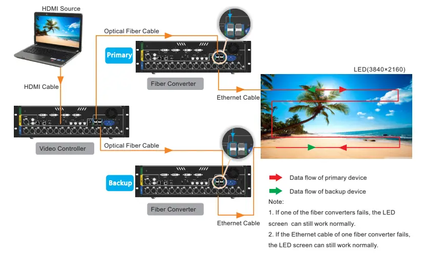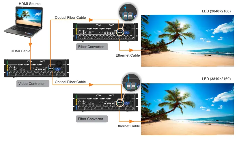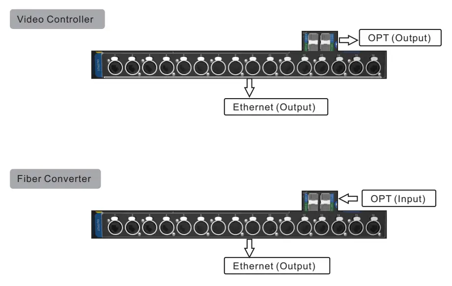 - Video Controller: Ethernet ports and optical fiber connectors are all used for output.