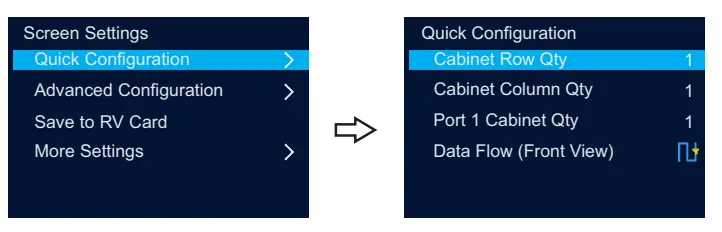 During data flow settings, you can view the real-time effects of different data flow settings on LED display by rotating the knob. When you are satisfied with the LED display image, press the knob to save the settings. - Step 6 Press ESC button to exit the quick configuration screen.