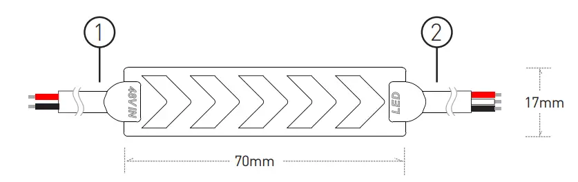 2. Connect the output to LED light, make sure the polarity is correct and cable is well insulated.