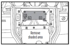 - Cut and remove the shaded area from the sub-dash to allow clearance for the aftermarket radio. (Figure A) From the factory radio/climate control panel: