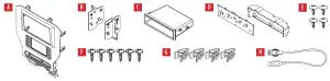 - E) (4) #8 x 3/8” Phillips truss-head screws • F) (6) #4 x 1/2” Phillips pan-head screws • G) (4) Panel clips • H) USB cable