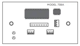 - Place the provided jumper across the PROGRAM header to enter the 738A programming mode. When you’re done programming, remove the jumper from the PROGRAM header and place it on one pin for future use.