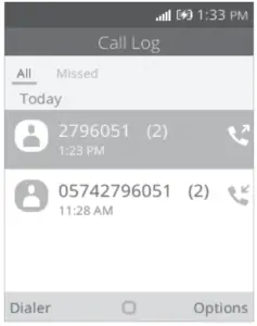 key from Home screen to access the call log and choose the contact you want to dial, press