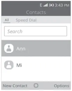 You can access this function by selecting Contacts from the app list. Searching for a contact You can search for a contact by typing the initial of their name. Subsequent letters may be added to refine the search. Viewing a contact Select a name from your contacts to read the contact information.