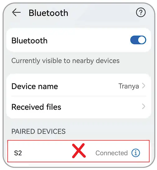 - The watch is not directly connected to the Bluetooth of the mobile phone. If so, please delete the “S2” from the Bluetooth list of your mobile phone.