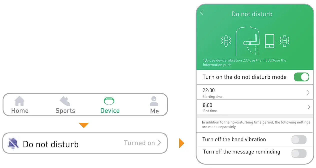 (3) Make sure “Do not disturb” mode on the watch is turned off.