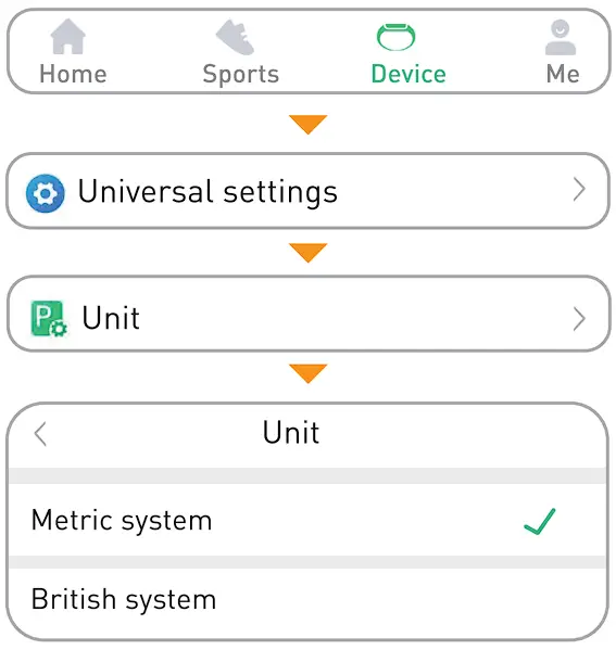 Android: Device -Universal settings-Unit-Select Metric system or British system