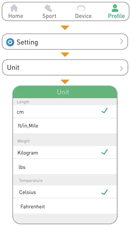 - Setting your avatar, name, gender, age, height and weight, which can help to increase the accuracy of the monitoring data.