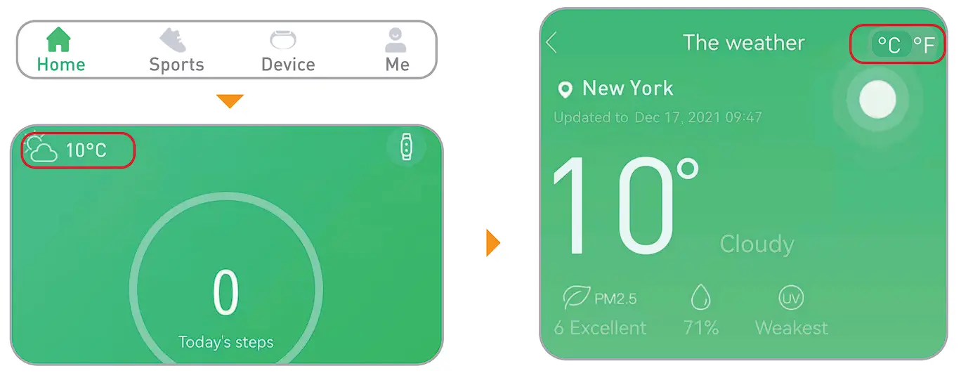 Note: Weather function is only available after you turn on the “Location” of the mobile phone.