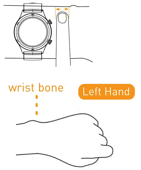 Wear the device with a finger’s distance from the wrist bone and adjust the tightness of the wrist band to a comfortable position.