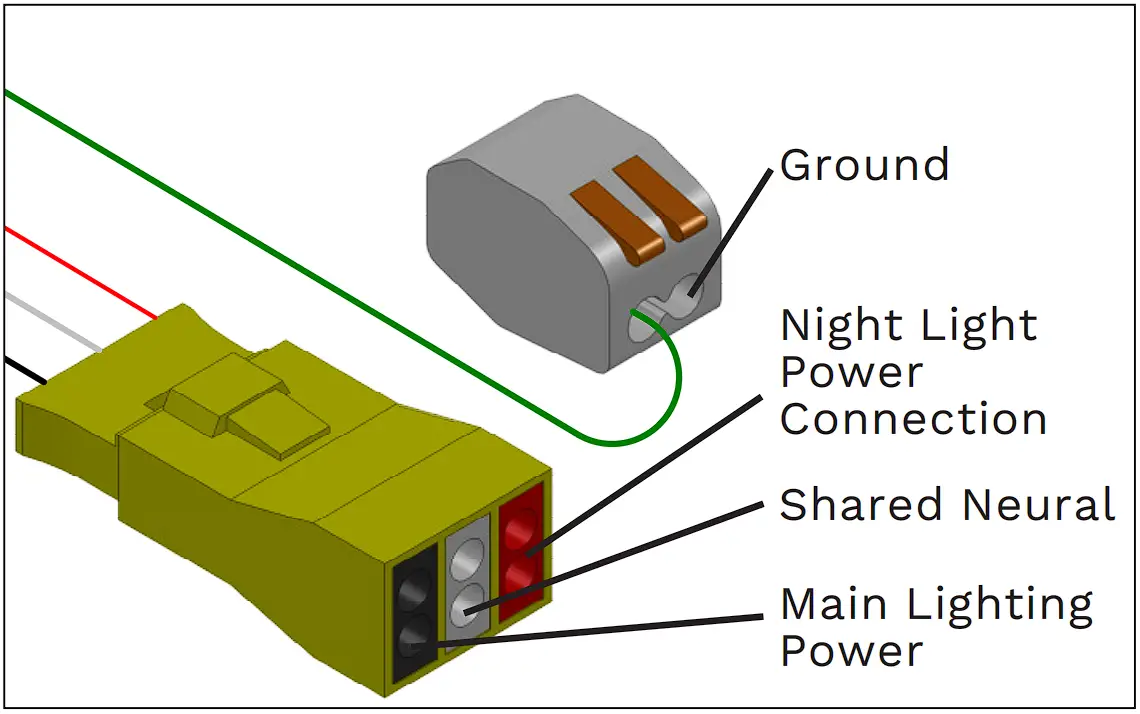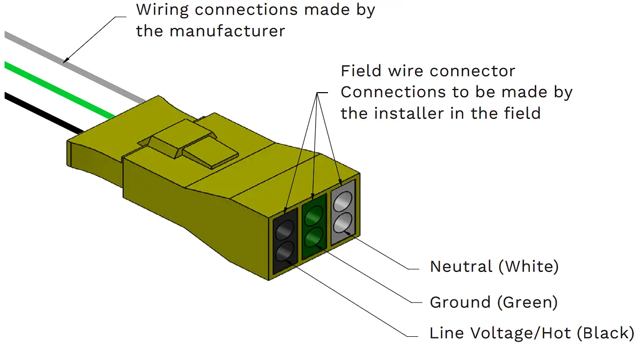 - Connect the two ends of the wiring fixture disconnect by sliding them together to complete the wiring.