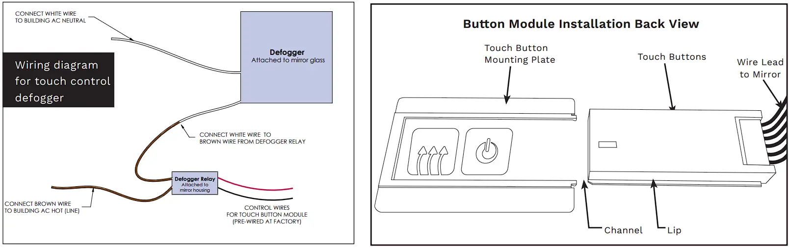 After mounting the lighted mirror housing and making field wiring connections to the fixture, then it it’s time to hard wire the Touch Control Defogger.