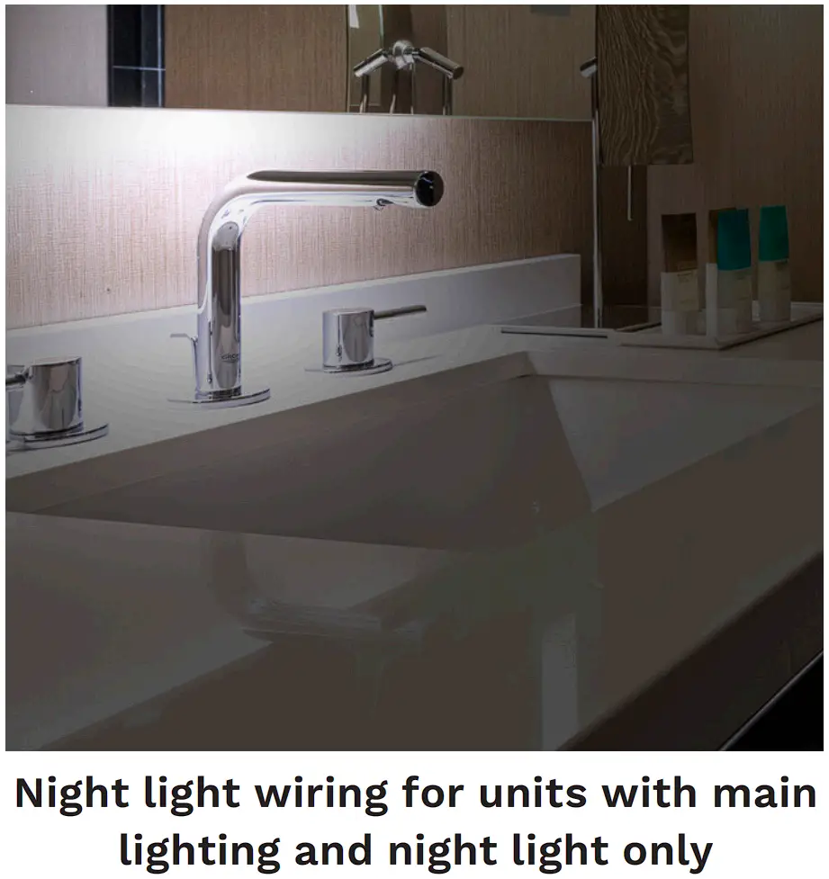 Just a warm glow of sleep-inducing low light is all you need, so you can drift back to dreamland easily. This small night light is hidden below the bottom edge of the mirror so it casts light downward and matches your sleek, functional style.
