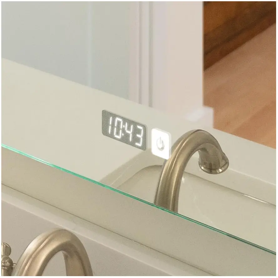 Stay on time with an elegant, in-mirror digital clock. Conveniently set and adjust the time with an easy-to-use IR remote.