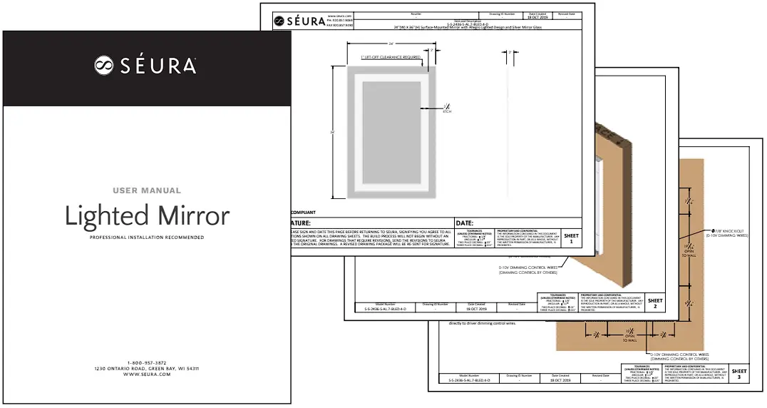 - Séura lighted mirrors are equipped with an easy-to-install wiring fixture disconnect that can be found on the mirror housing. Refer to your included drawing package to identify the location of the fixture disconnect.