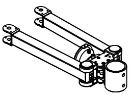 Place plastic pads (f) on top and bottom of monitor arms (d2), making sure pins