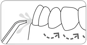 To use the Plaque SeekerTM tip, place the tip close to the teeth so that the bristles are gently touching the teeth. Gently glide tip along gumline, pausing briefly between teeth to gently brush and allow the water to flow between the teeth.