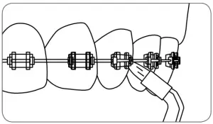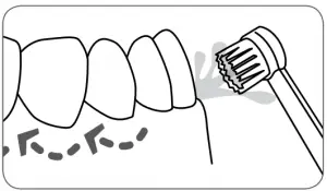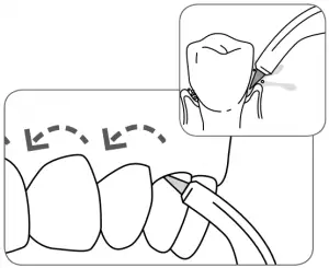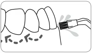 To use the orthodontic tip, gently glide tip along gumline, pausing briefly to lightly brush area between teeth and all around orthodontic bracket, before proceeding to the next tooth.