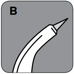 The Pik PocketTM tip is specifically designed to deliver water or anti bacterial solutions deep into periodontal pockets. To use the Pik PocketTM tip, set the unit to the lowest pressure setting. Place the soft tip against a tooth at a 45 degree angle and gently place the tip under the gumline, into the pocket.