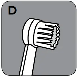Place the toothbrush tip in mouth with the brush head on the tooth at the gumline. The toothbrush tip can be used with or without toothpaste. Using a light pressure (bristles should not bend) massage the brush back and forth with very short strokes much like you would with a manual toothbrush.