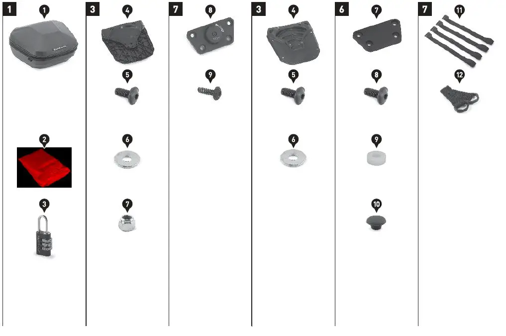 Step [13]: Secure the top case via locking button of the anti-theft device [8) against theft and check the proper fit on the vehicle.