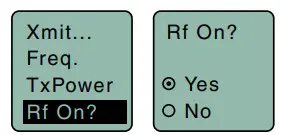 button and releasing it before the progress bar finishes, will turn the unit on with the RF output turned off. In this Standby Mode the menus can be browsed to make settings and adjustments without the risk of interfering with other wireless systems nearby.