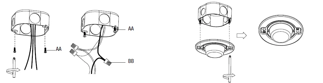 - Install a mounting screw (AA) in each electrical box hole but do not tighten fully.