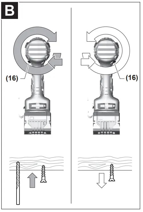 ![]() | The rapid shut-off function (KickBack Control) gives the user greater control over the power tool and offers them better protection than power tools that do not have KickBack Control. The power tool will switch off if it suddenly and unforeseeably rotates around the drilling axis. |