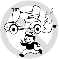 ![]() Never use electronic radio transmitters such as walkie-talkies, or cellular phones. | ![]() Make sure that there are no obstacles behind you while reserving your scooter. |