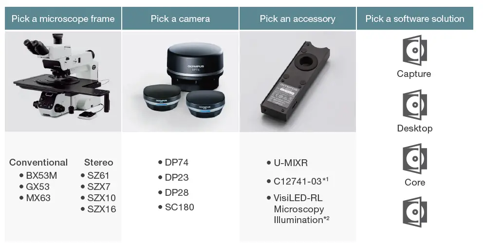 Olympus offers a comprehensive set of microscopy and software solutions for industrial applications, ranging from routine inspection to sophisticated analysis. Depending on your application, choose the microscope software that best fits your needs: