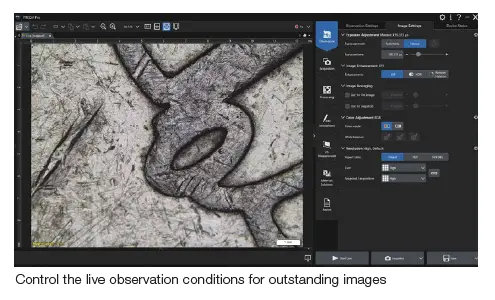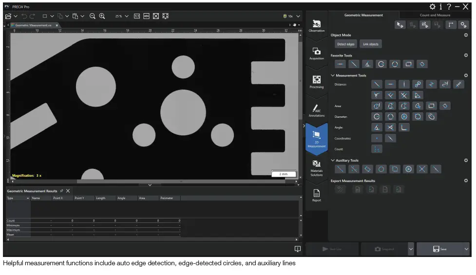 Simple-to-use PRECiV™ software gives you control over your microscope so that you can perform precise, repetitive 2D measurements during production, quality control, and inspection operations. Obtain results that comply with the latest industrial standards and create professional reports that can be easily exported to your company’s network. With robust data sharing and security features, PRECiV software makes your workflow faster and more efficient.