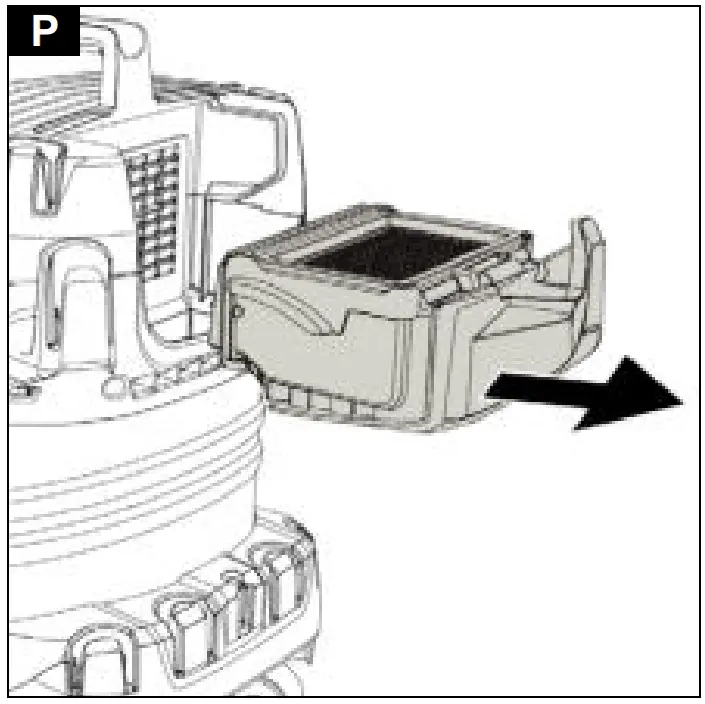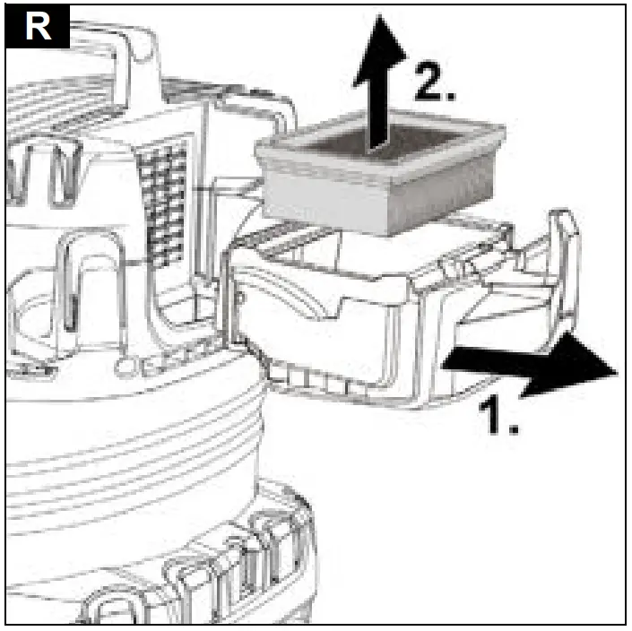 - Empty the filter box into a waste container. In the case of heavy soiling, tap the filter box against the edge of the waste container. The flat pleated filter does not have to be removed from the filter box.