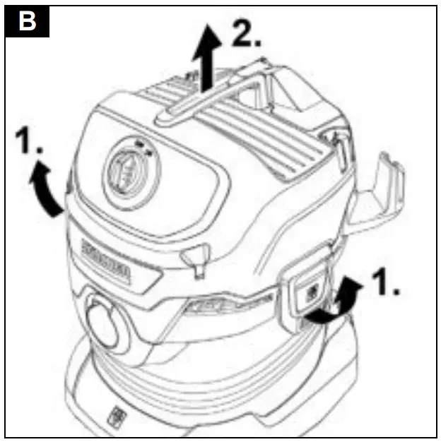 The suction hose can be wrapped around the device head and attached to the device head with the help of the hose collar. - Store the device in a dry and frost-proof room.