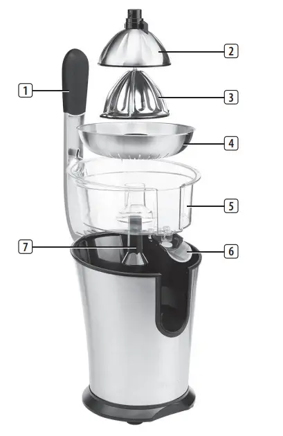 - As soon as the half-citrus fruit is pressed onto the juicing cone, the motor will be activated.