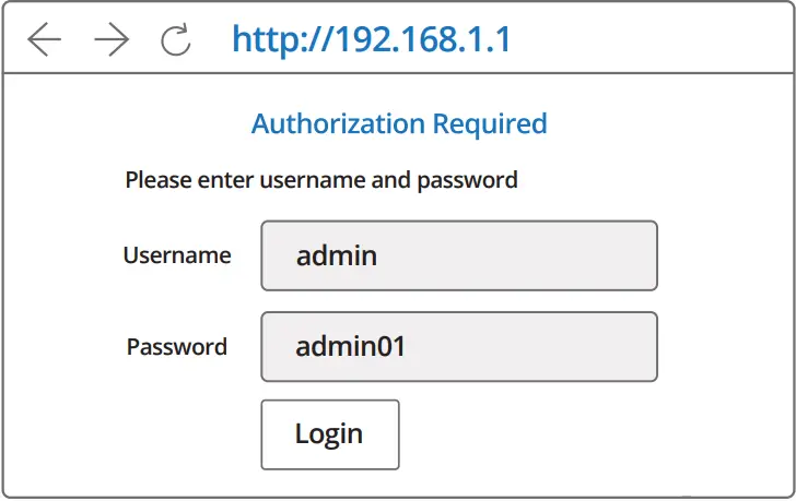 - To enter the router’s Web interface (WebUI), type http://192.168.1.1 into the URL field of your Internet browser.