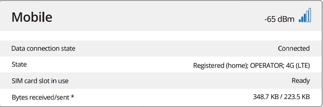 - Go to the Overview page and pay attention to the Signal Strength indication (image B). To maximize the cellular performance try adjusting the antennas or changing the location of your device to achieve the best signal conditions.